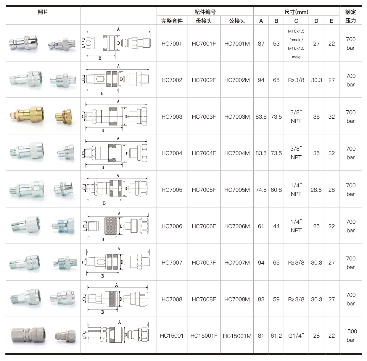 液压快速接头 型号: 特点介绍: 环沪提供多种快速接头是用于连接和组装环沪液压设备,用于700bar工作压力。 螺纹密封剂 使用一种新型的环氧螺纹密封剂来密封NPT螺纹。 参数: 分类: 液压系统元件2018年11月21日文章导航历史的文章历史的文章:压力表未来的文章未来的文章:700bar高压油管相关文章700bar高压油管2018年11月21日压力表2018年11月21日压力表座2018年11月21日4通分配阀2018年11月21日3通分配阀2018年11月21日2通分配阀2018年11月21日