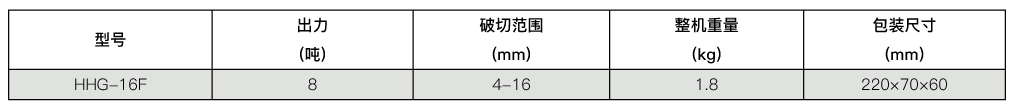 分体式液压钢筋剪 型号:HHG-16F 特点介绍: 适合剪切Ø4-16 mm钢筋。 开口式刀头设计,使用方便。 高强度特殊钢剪切刀片,坚固耐用。 配置R2 3/8 快速接头和防尘帽。 可连接任何输出压力达700 bar的液压泵。 木箱包装。 参数: 分类: 分体式液压钢筋剪2018年11月21日文章导航历史的文章历史的文章:电动液压钢筋弯曲机HHG-16W未来的文章未来的文章:分体式液压钢筋剪HHG-20F相关文章分体式液压钢筋剪HHG-25F2018年11月21日分体式液压钢筋剪HHG-22F2018年11月21日分体式液压钢筋剪HHG-20F2018年11月21日
