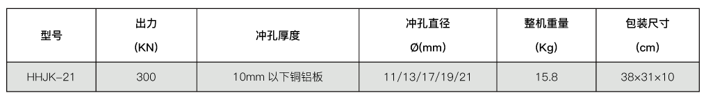机械打孔器 型号:HHJK-21 特点介绍: 整机选用优质超高强度合金钢制作,具有强度高、重量轻、经久耐用之特点。 设计结构简单,使用操作方便,无需电源,省时、省力,特别适用于高空作业。 参数: 分类: 机械式开孔器2018年11月22日文章导航历史的文章历史的文章:立式金属打孔机HHDK-8未来的文章未来的文章:分体式液压开孔器(套装)HHK-15