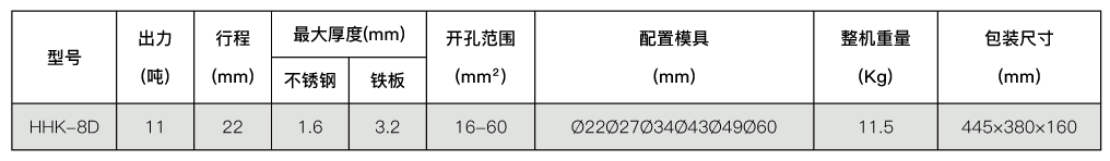 分体式液压开孔器(套装) 型号:HHK-8D 特点介绍: 分体式结构,弹簧回位。 操作简单、省力、速度快。 加工不受场地,位置限制。 包含手动液压泵、0.8米高压油管和快速接头。 标配B组圆形开孔模具。 紧固工程塑料箱包装,储放工具和配件。 参数: 分类: 分体式液压开孔器2018年11月22日文章导航历史的文章历史的文章:分体式液压开孔器(套装)HHK-15未来的文章未来的文章:分体式液压开孔器(套装)HHK-8B相关文章分体式液压开孔器(套装)HHK-82018年11月22日分体式液压开孔器(套装)HHK-8B2018年11月22日分体式液压开孔器(套装)HHK-152018年11月22日