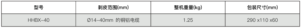旋切型剥皮器 型号:HHBX-40 特点介绍: 适用于外径14-40mm的铜铝电缆末端主绝缘层及半导体层的剥除。 剥切厚度准确可调,通常用于110KV电缆头的处理。 螺旋削减,操作通过电缆轴旋转。 耐磨帆布袋包装。 参数: 分类: 电缆剥皮工具2018年11月23日文章导航历史的文章历史的文章:轻型剥皮器,HHBX-30未来的文章未来的文章:旋切型剥皮器,HHBX-40A相关文章旋切型剥皮器,HHBX-40A2018年11月23日轻型剥皮器,HHBX-302018年11月23日