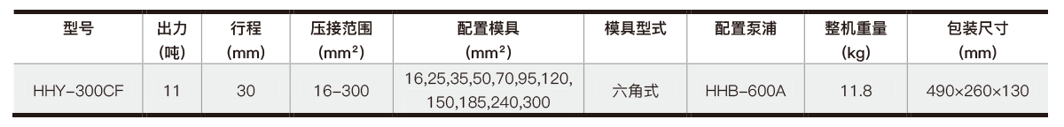 分体式液压压接钳(套装) 型号:HHY-300CF 特点介绍: C型大工作头,可旋转,坚固耐用。 配置轻便实用型单回路手动液压泵HHB-600A。 配1.5米高压软管。 必要时可手动泄压复位。 钢制便携箱包装,储放工具和配件。 参数: 分类: 分体式液压钳2018年11月24日文章导航历史的文章历史的文章:机械式压接钳,HHYJ-240未来的文章未来的文章:分体式液压压接钳(套装),HHY-300BF相关文章分体式液压压接钳,HHY-200T2018年11月27日分体式液压压接钳,HHY-100TF2018年11月27日分体式液压压接钳,HHY-60T2018年11月27日分体式液压压接钳,HHY-630F2018年11月27日分体式液压压接钳,HHY-1000F2018年11月27日分体式多功能全能王,HHY-60HF2018年11月26日
