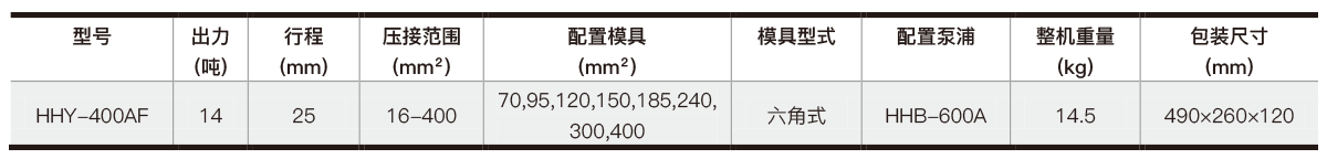 分体式液压压接钳(套装) 型号:HHY-400AF 特点介绍: 翻开插销式工具头,可开启,坚固耐用。 配置轻便实用型单回路手动液压泵HHB-600A。 配1.2米高压软管。 必要时可手动泄压复位。 钢制便携箱包装,储放工具和配件。 参数: 分类: 分体式液压钳2018年11月24日文章导航历史的文章历史的文章:分体式液压压接钳(套装),HHY-300BF未来的文章未来的文章:分体式液压压接钳(套装),HHY-500相关文章分体式液压压接钳,HHY-200T2018年11月27日分体式液压压接钳,HHY-100TF2018年11月27日分体式液压压接钳,HHY-60T2018年11月27日分体式液压压接钳,HHY-630F2018年11月27日分体式液压压接钳,HHY-1000F2018年11月27日分体式多功能全能王,HHY-60HF2018年11月26日