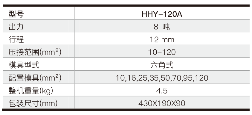 手动液压压接钳 型号:HHY-120A 特点介绍: 钢制外壳和手柄,坚固耐用。 H型开口工作头,钳头可旋转。 旋转泄压阀即可完成复位。 塑料便携箱包装,储放工具和配件。 参数: 分类: 手动液压钳2018年11月27日文章导航历史的文章历史的文章:手动液压压接钳,HHY-70A未来的文章未来的文章:手动液压压接钳,HHY-240A相关文章手动多功能全能王,HHY-60H2018年11月27日手动液压压接钳,HHY-400E2018年11月27日手动液压压接钳,HHY-400D2018年11月27日手动液压压接钳,HHY-300G2018年11月27日手动液压压接钳,HHY-5102018年11月27日手动液压压接钳, HHY-4302018年11月27日