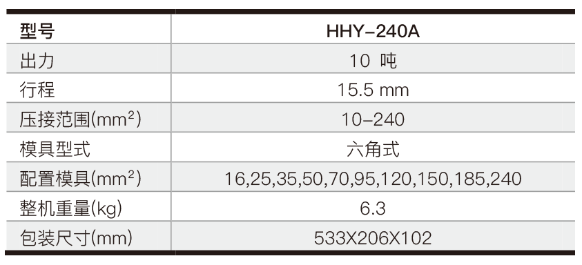 手动液压压接钳 型号:HHY-240A 特点介绍: 钢制外壳和手柄,坚固耐用。 H型开口工作头,钳头可旋转。 旋转泄压阀即可完成复位。 塑料便携箱包装,储放工具和配件。 参数: 分类: 手动液压钳2018年11月27日文章导航历史的文章历史的文章:手动液压压接钳,HHY-120A未来的文章未来的文章:手动液压压接钳,HHY-240C相关文章手动多功能全能王,HHY-60H2018年11月27日手动液压压接钳,HHY-400E2018年11月27日手动液压压接钳,HHY-400D2018年11月27日手动液压压接钳,HHY-300G2018年11月27日手动液压压接钳,HHY-5102018年11月27日手动液压压接钳, HHY-4302018年11月27日