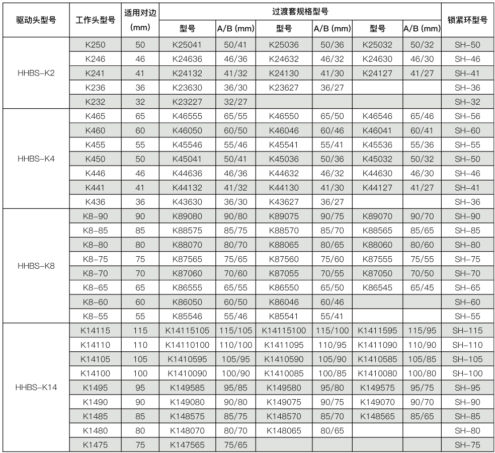 中空型液压扭矩扳手专用变径套 型号: 特点介绍: 变径套配合中空型扭矩扳手工作头使用,使单一的工作头能配合多种螺栓尺寸,大大提高不同工况的适应性。 参数: 中空型液压扭矩扳手专用变径套选型表 分类: 中空型液压扭矩扳手2018年11月28日文章导航历史的文章历史的文章:液压扭矩扳手专用电动泵,HHB-6L未来的文章未来的文章:中空型液压扭矩扳手工作头相关文章中空型液压扭矩扳手2018年11月28日中空型液压扭矩扳手工作头2018年11月28日